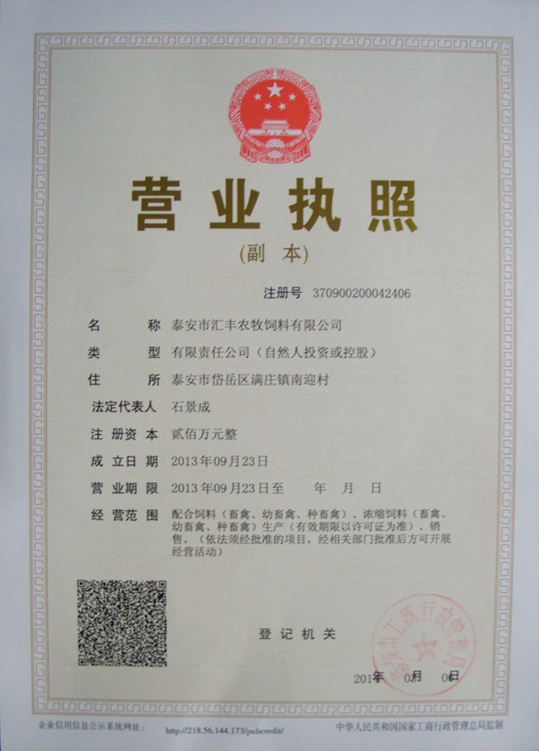 泰安市匯豐飼料有限公司 電話(huà):0538-5892001